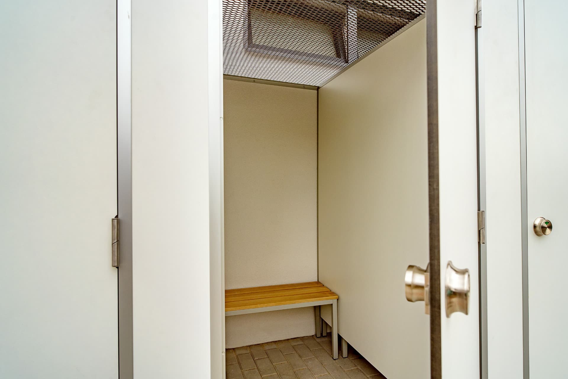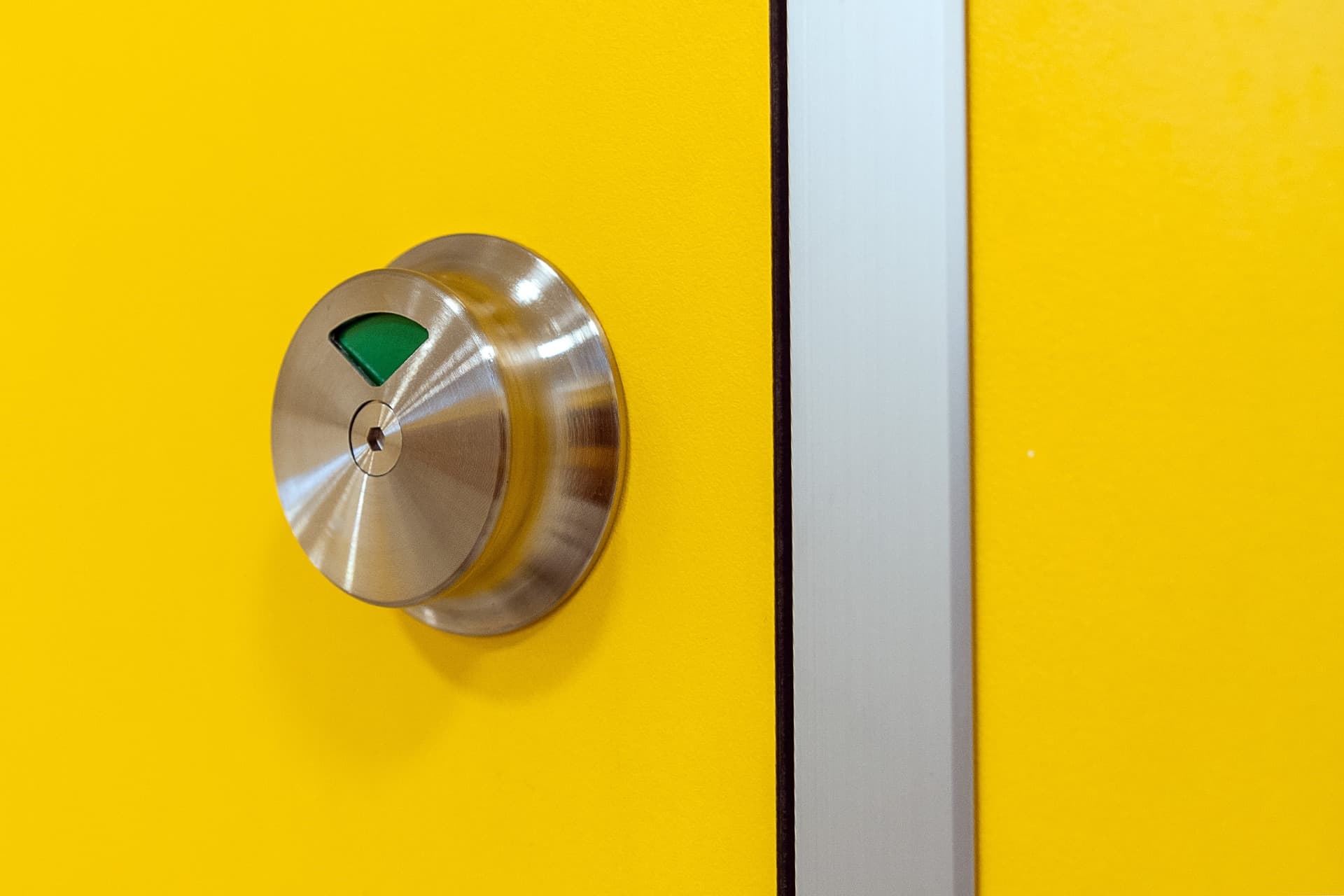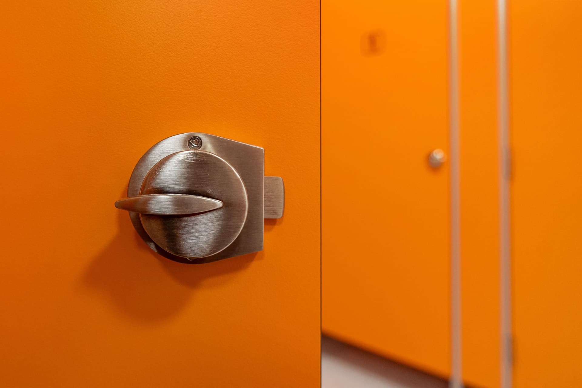 Zamykaní dveří je řešeno kuličkou se západkou s indikací uzamčení a nouzovým otevíráním v provedení zinek v barvě nerez oceli.